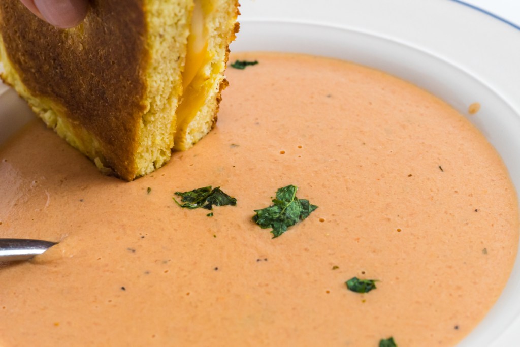 Pure lip-smacking enjoyment when you need a little I made this last night and my non-keto husband said it was the best tomato soup he'd ever had! Super creamy and super easy, makes this perfect soup recipe a go-to for days you need some comfort. Keto Creamy Tomato-Basil Soup with "Grilled Cheese" Crackers.